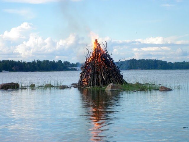 Hieno juhannusaatto kaupungissa. Keskustassa missään ei ketään paitsi muutama hyvin eksyneen näköinen turisti. Ihanan rauhallista ja hiljaista, ei edes juoppoja spårassa. Matkamme kulki kohti mustasaarta, jossa osallistuimme muiden lapsiperheiden kanssa luterilaisen seurakunnan juhannushulinoimiseen. Erityisnähtävyytenämme oli lammas jota kutsuimme hevilampaaksi, koska sen möreä ja käheä "bää bää" tai pikemminkin "böääääh böääääääh" olisi saanut pahemmankin hevilaulajan kateudesta hiljaiseksi ;)